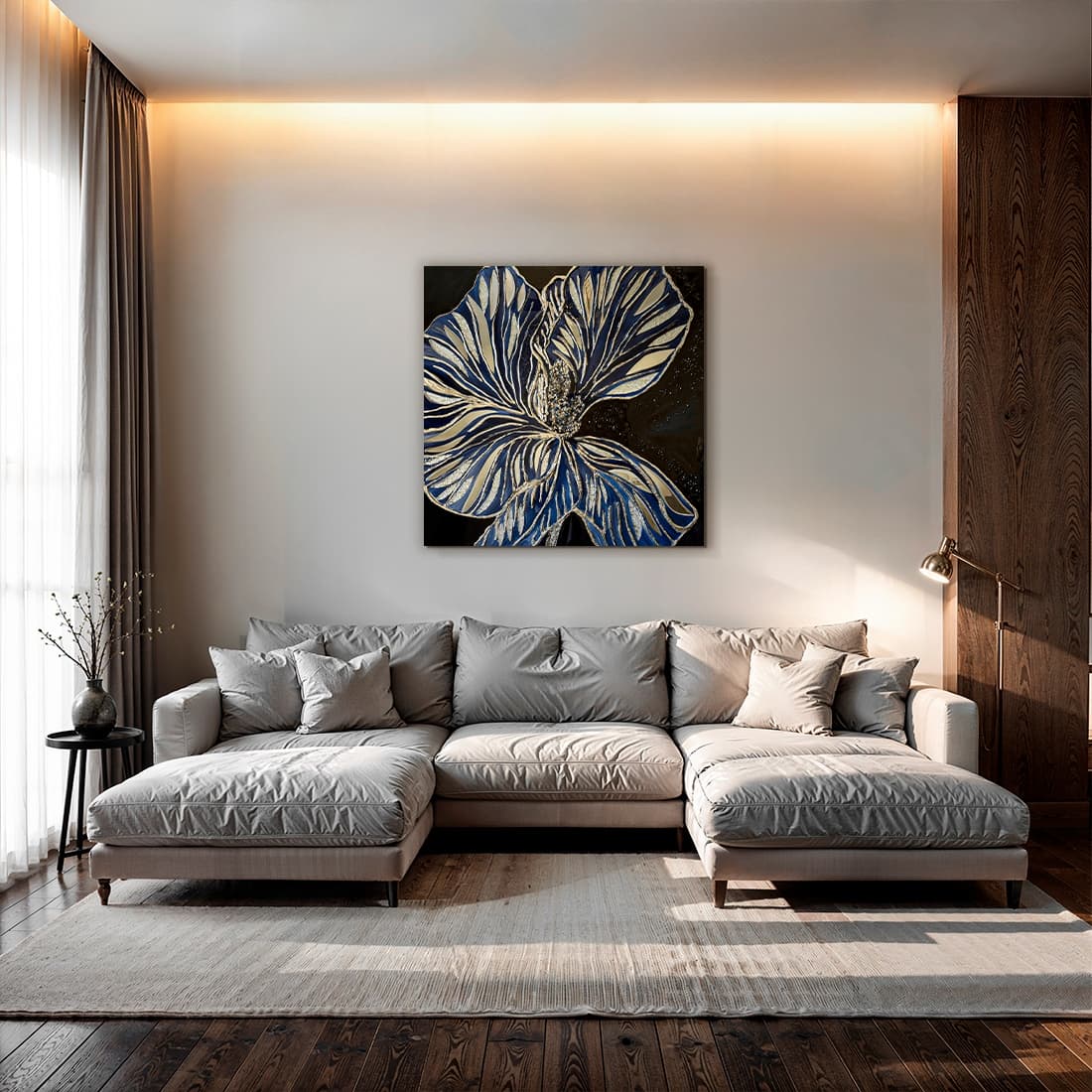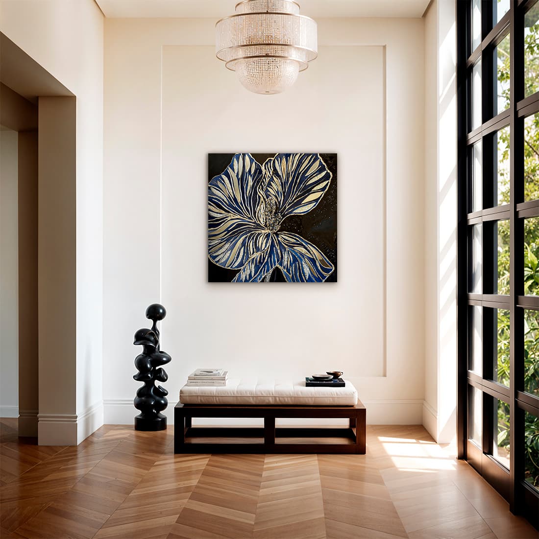 This is a dance unfolding in the present moment, where the petals are energy, and the lines are a reflection of the unique path. The gilding, like frozen light, emphasizes fleeting physical beauty, reminding us of eternity living in every moment.