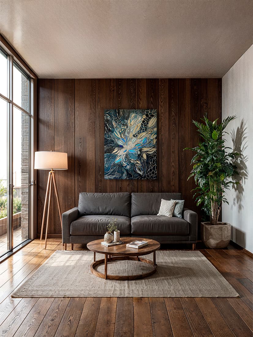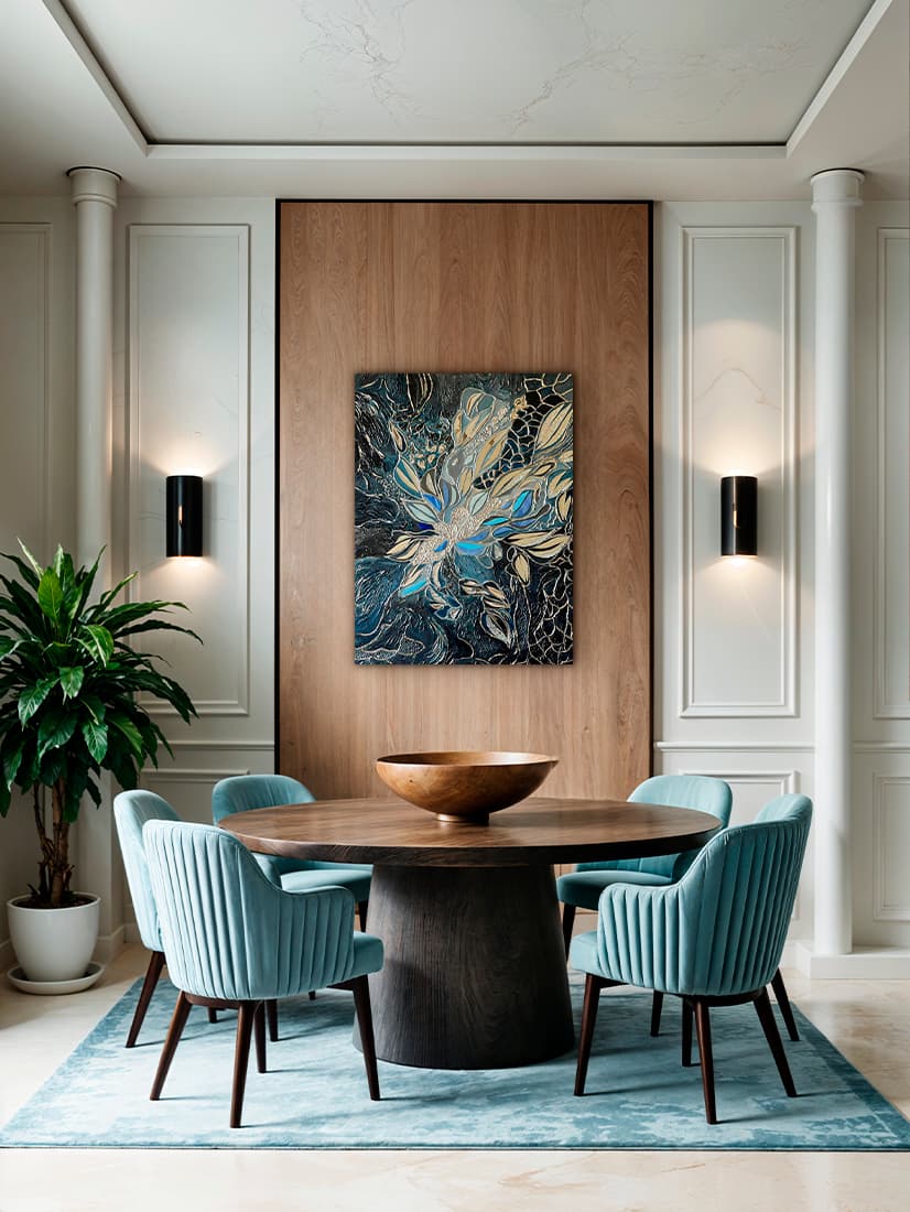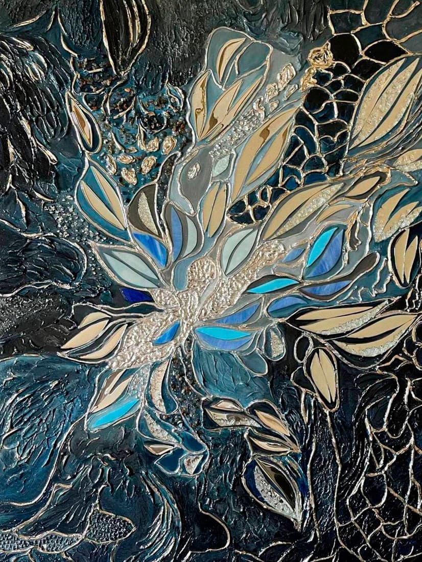 Texture paste, acrylic paints, mirror gold leaf, natural mirrors, pure quartz, agate, epoxy resin.